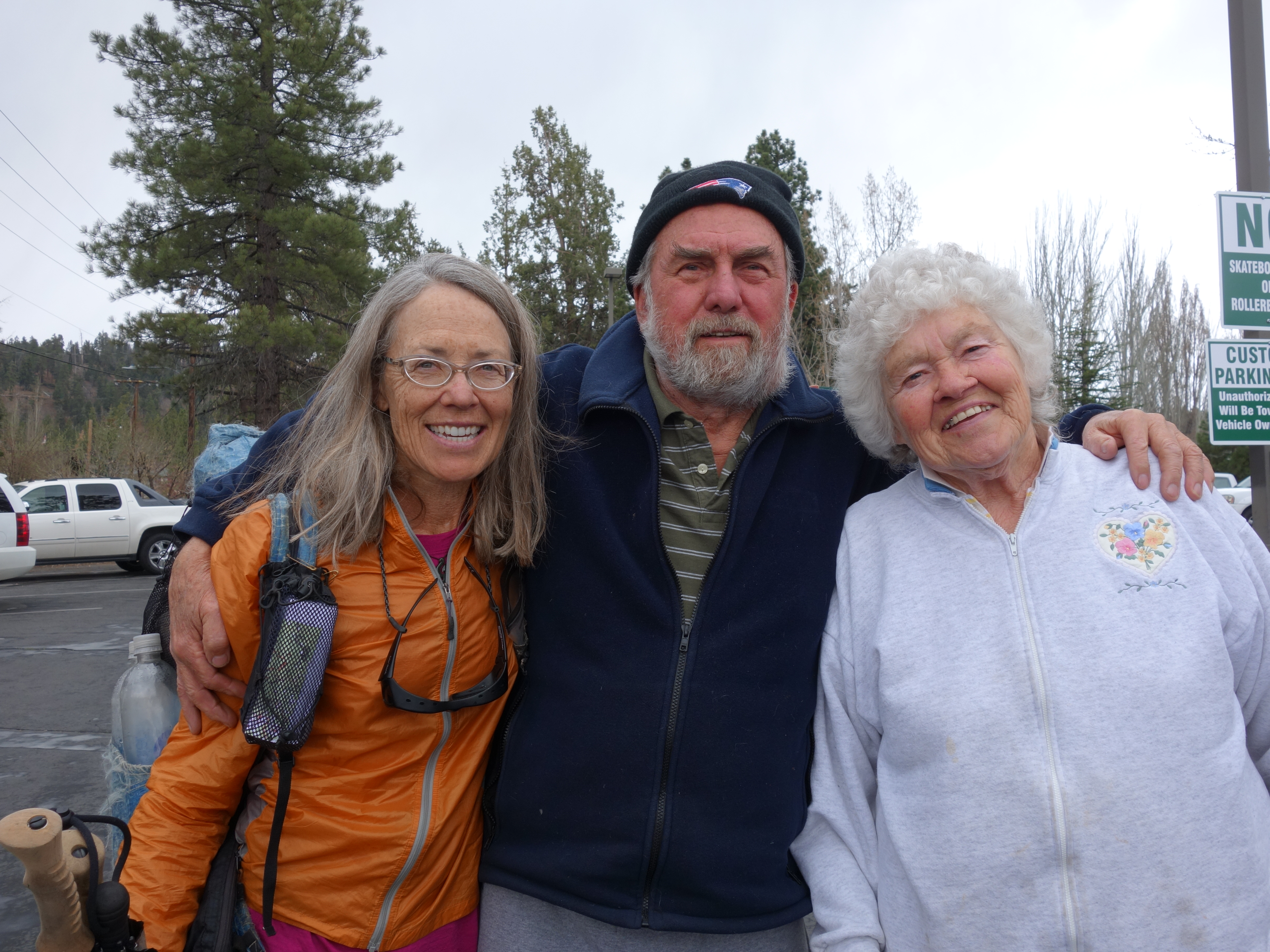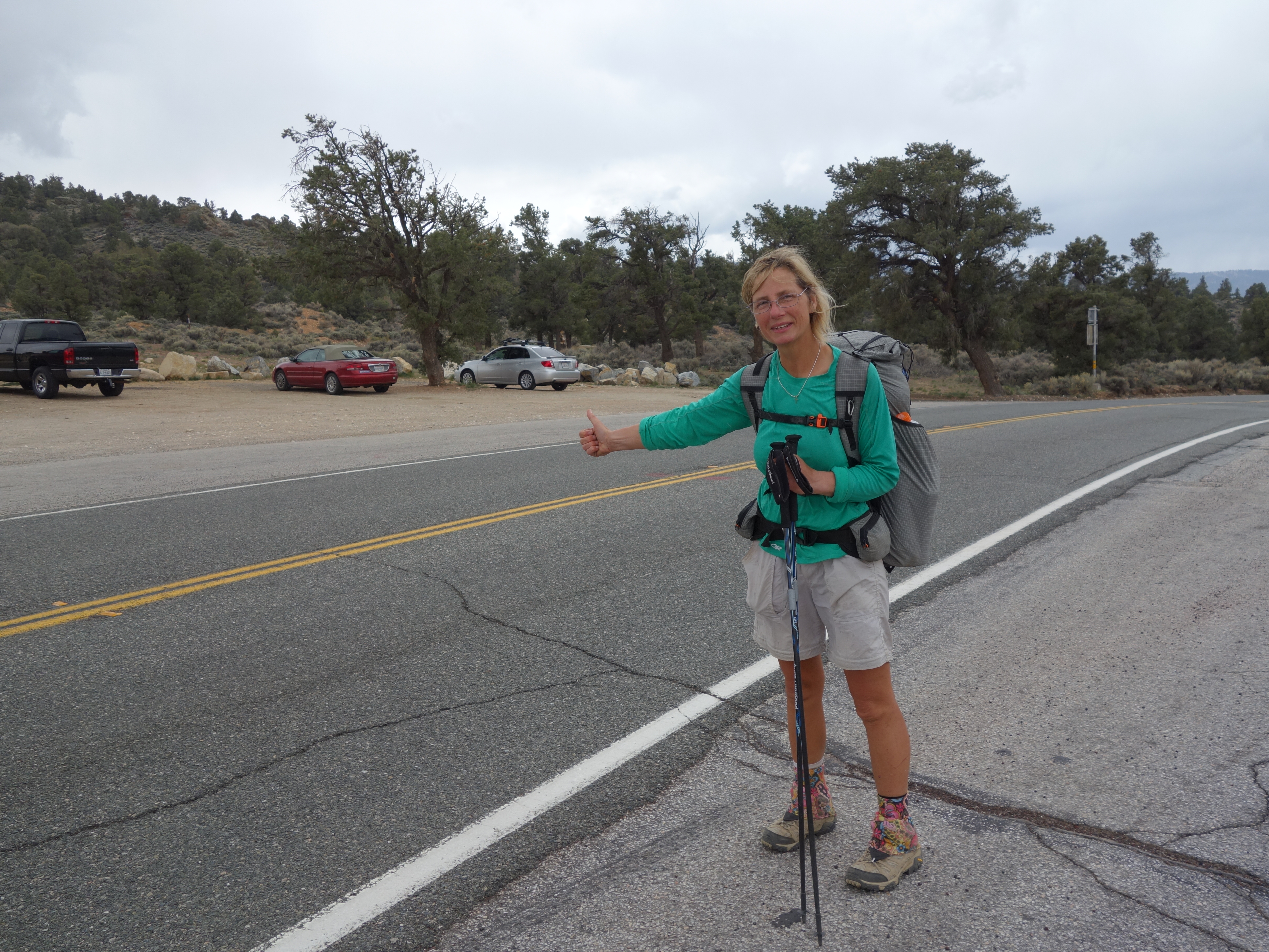 Got super lucky with the hitch into town. 5 minutes with our thumbs out and then everything changed. A van pulled over. They could take 2 part of the way. Day hikers across the hwy just got to their car and yelled to ask us if we wanted a beer before the ride. Then a truck with a camper made a u-turn and said “Are you Why Not? We are here to take you to the hostel.” They are Honey and Bear, trail angels from Andover, Maine. I didn’t stay with them last year but I did meet them in Damascus, Virginia. They are out here on a road trip, visiting family and will go to kickoff. They find trailheads where ever they go and help out hikers. Astro, Spirit, and Grasshopper were ahead of us and got a ride the 9 miles in to town. When Honey and Bear heard that the other 4 of our group was not far behind, they drove back out to the trailhead and found us. Stuff like this is what makes the trail so special. And so worth hiking again.
