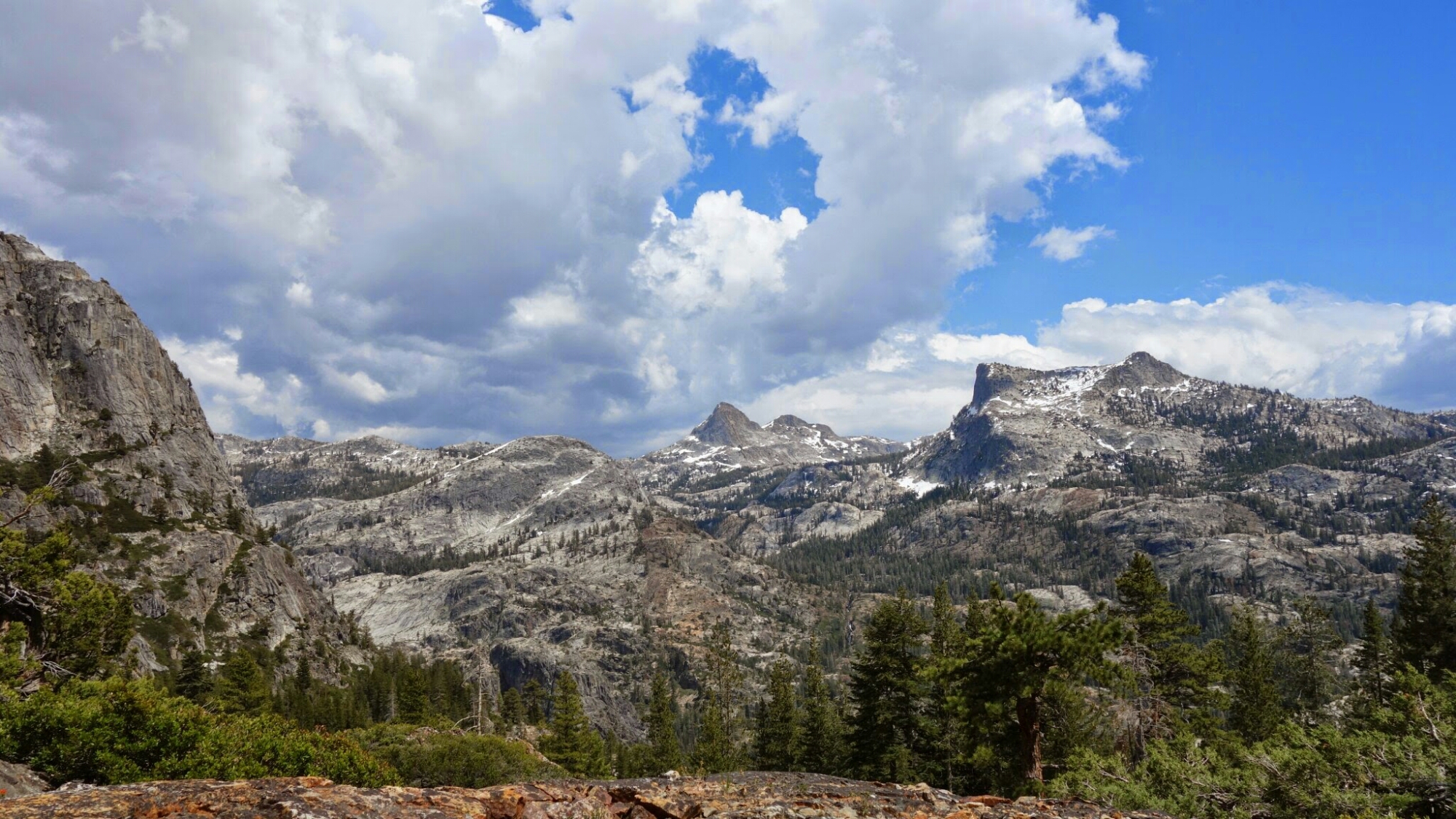 Clouds, thunder and a few drops of rain over Seavey Pass. But now it’s clear enough to cowboy camp.