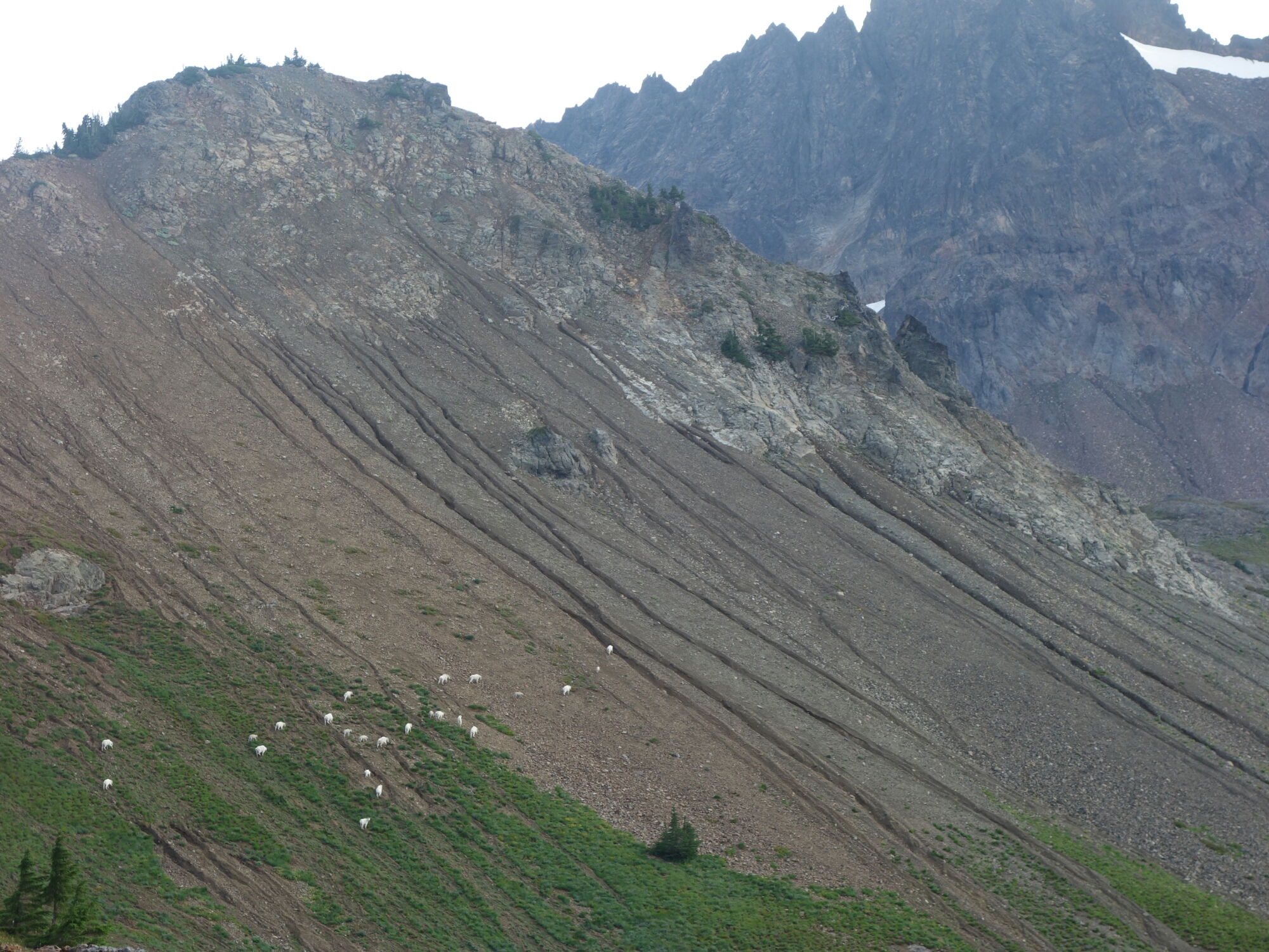 As I got to the open traverse leading to Cispus Pass I saw a herd of mountain goats! Awesome. They knew I was there and stayed just enough ahead of me that I couldn’t get a great photo. But they were there!