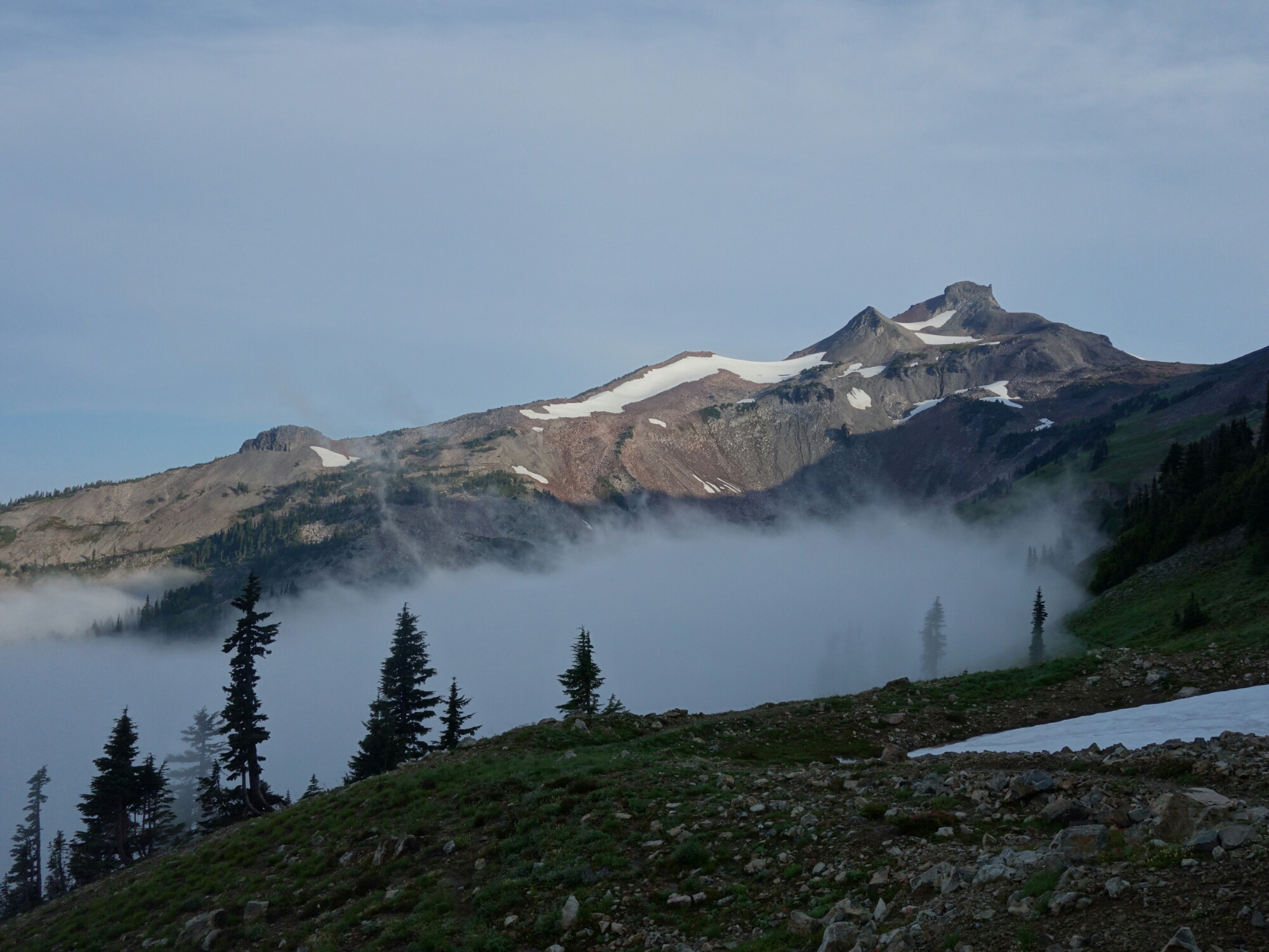 The sun was shining thru the clouds and rising over the Goat Rocks. I was feeling pretty good about my decision.