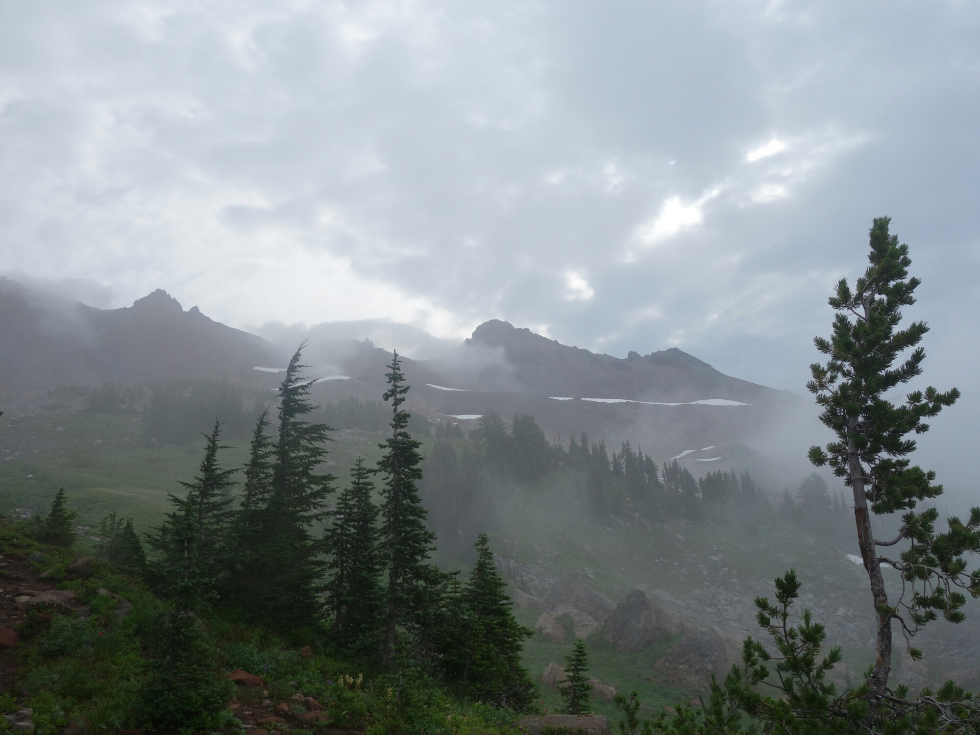 It rained again most of the night so I just worried again. I also wondered what Atlas thought about me not showing up in White Pass yesterday. It was foggy when I started hiking but then started to clear.
