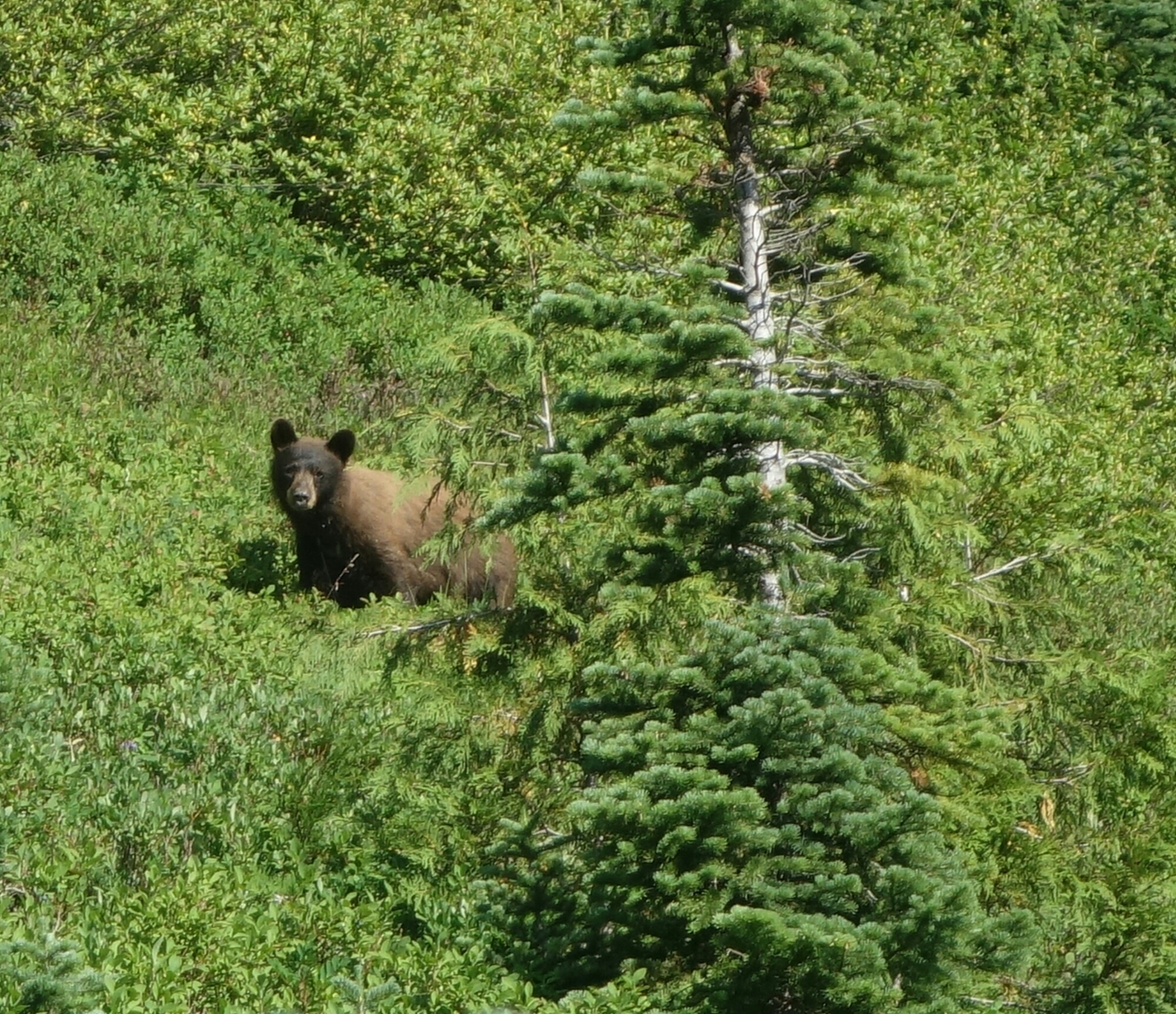 Not much later we saw a big bear above the trail eating huckleberries. He knew we were around but he kept on eating. We watched him for about 10 minutes… cool.