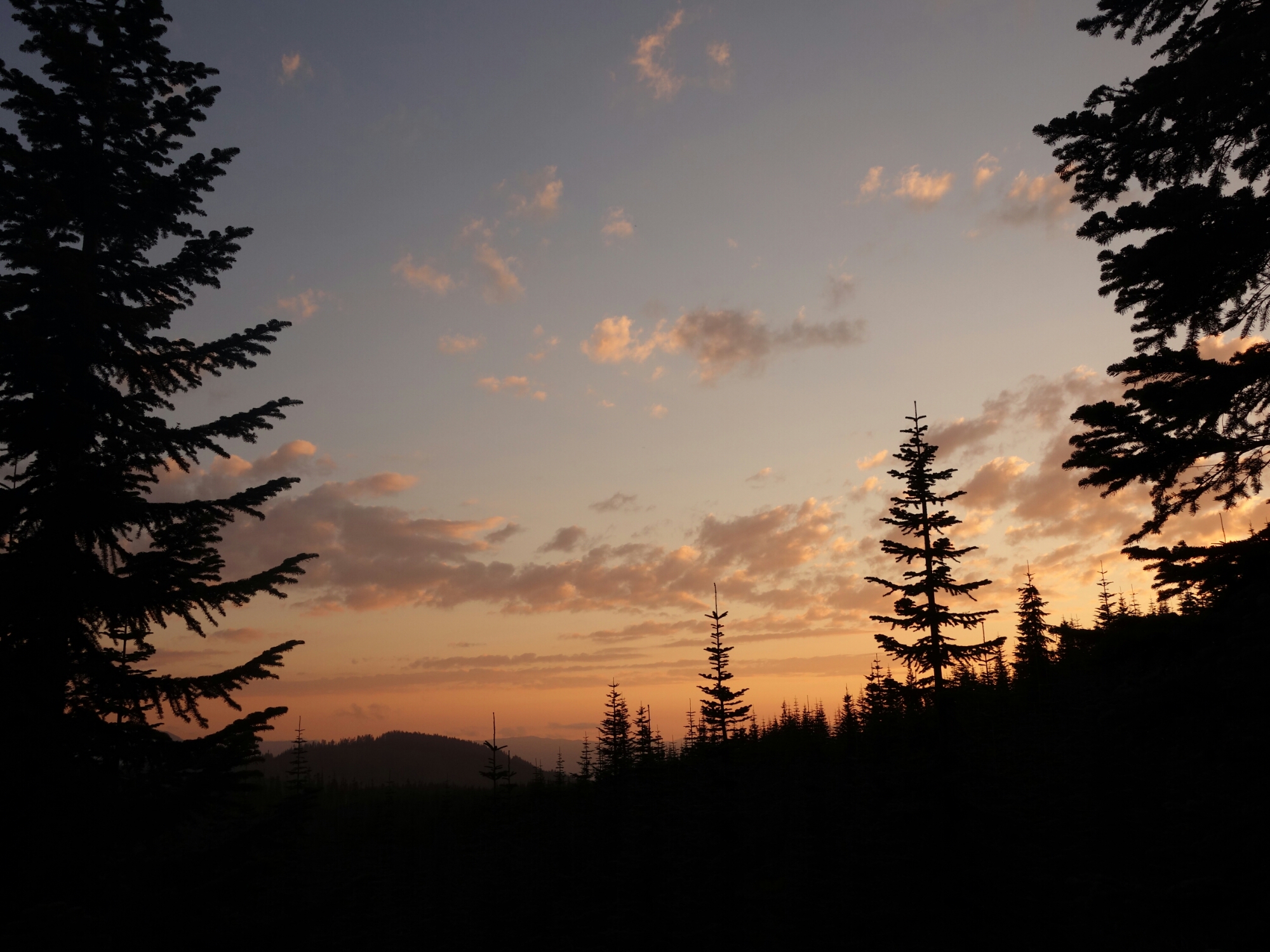 We are camped on an old road. The humidity immediately resulted in condensation on the inside of the tent. Hate that. But the sunset was nice.