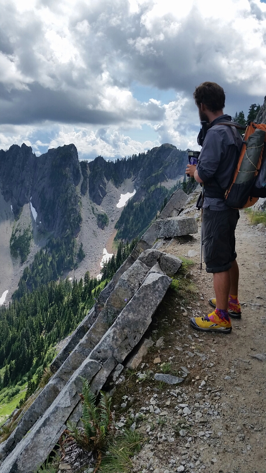 The first 36 miles from Snoqualmie Pass were closed in 2009. There was a trail detour that was beautiful. But the trail today was spectacular. Jagged peaks. Long traverses. Lakes. Ever changing clouds.