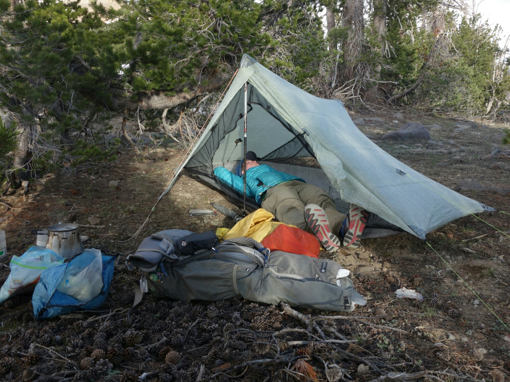We have enough water for tomorrow. It is pretty darn cold up here but I am warm in my bag and tent. This might be my favorite campsite of the hike.
