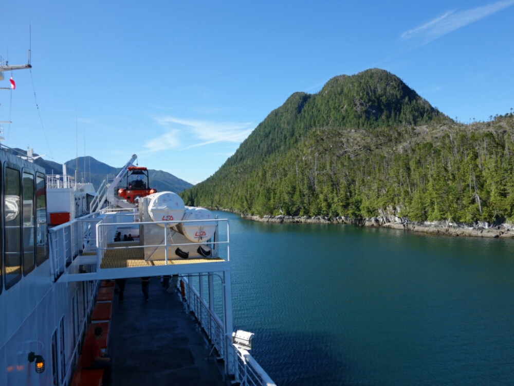 When I did get up I checked the gps screen at the purser’s desk. We were almost to the northern end of Vancouver island. No wonder it takes 30 hours to go from Bellingham to Ketchikan, our first stop.