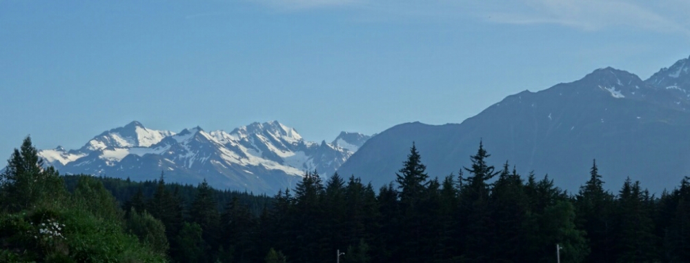 I think Haines is the most beautiful town setting I have ever seen.  I had made reservations at the Bear Creek Cabins a mile out of town.  That was one of the longest miles I have ever walked.  I rented a bike to get back to town. I rode by an RV park right in town.  Camping at water’s edge with views of the most amazing mountains.  Perfect weather.  This is where I should have stayed.  So much for planning ahead.