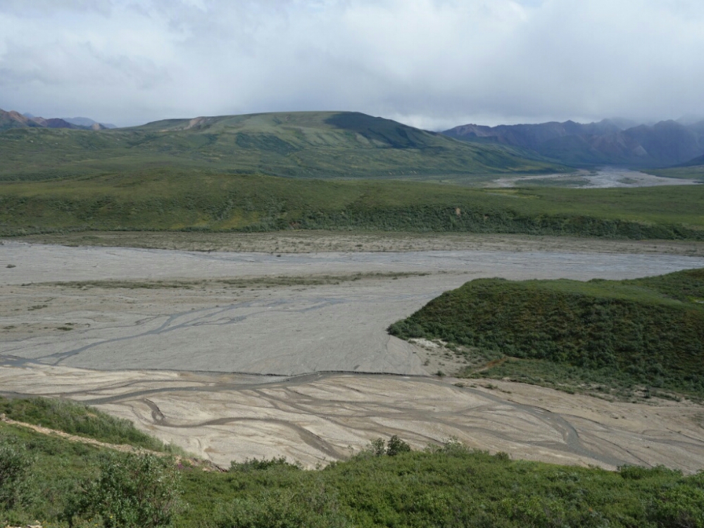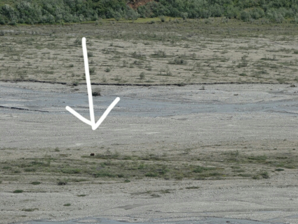 The mountain never did show himself (Denali is a he mountain). We saw 7 grizzlies, all too far away. There were lots of caribou. A few tiny white moving specks were Dall sheep. No moose, wolves or fox this trip.