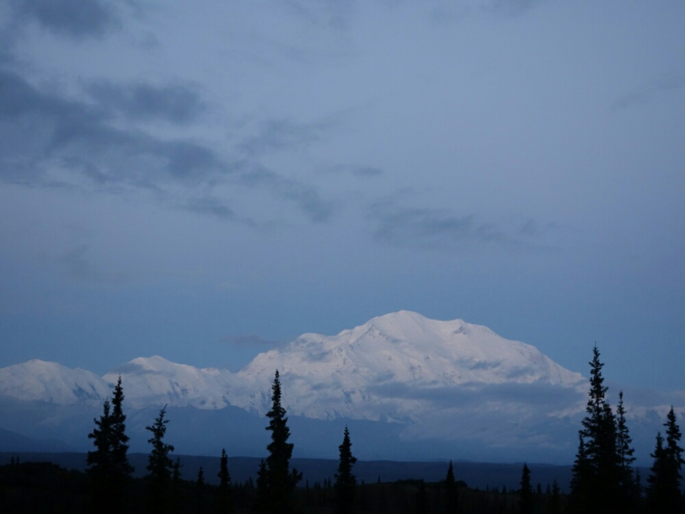 Since there was no wind I decided to try to walk to the reflection pond 2.5 miles away. As I walked the mountain turned pink. But the clouds were getting closer….