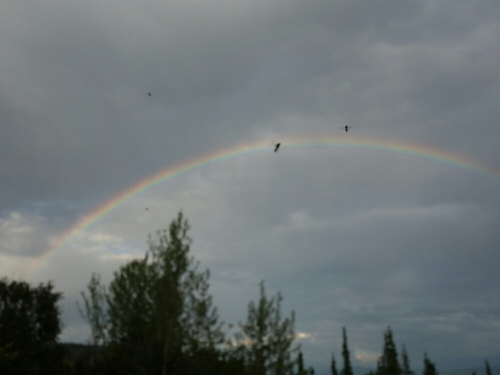 Later, back at camp a couple of mosquitos photo bombed my picture of a rainbow.