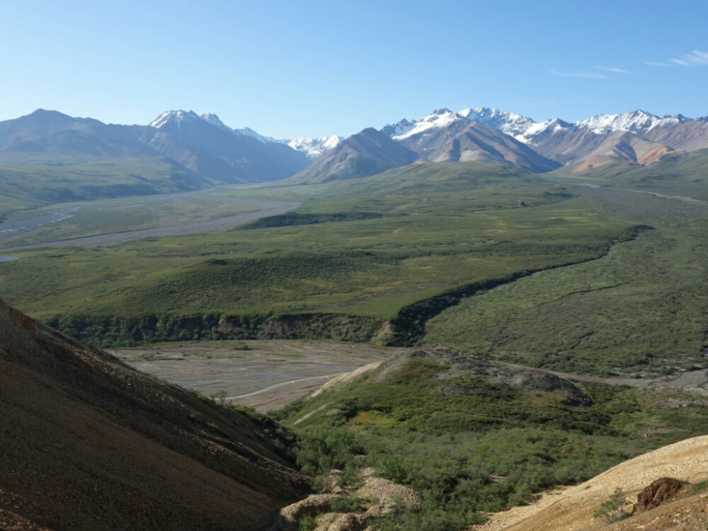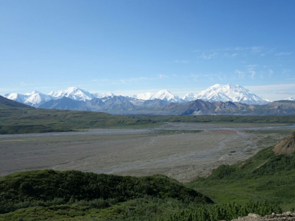 Today I took the bus back into the park to Wonder Lake at mile 85. But today the skies were clear and the mountain was out in all his glory. What a different bus ride! And since I am camping here for 5 nights I don’t have to immediately ride the bus back.