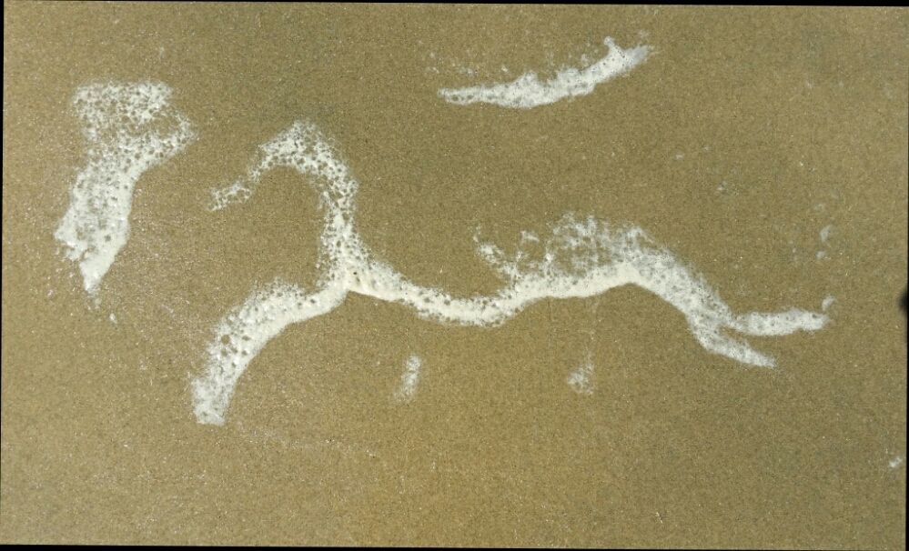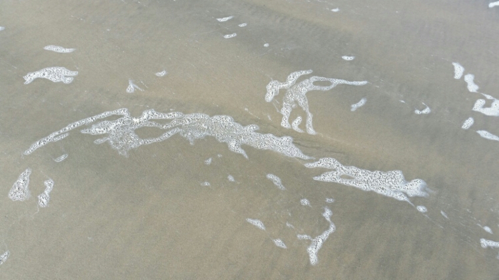 Just walking. And walking. Surf on one side. Dunes on the other. A few shells. A few birds. But it wasn’t boring. The sea foam had dried into all sorts of shapes. It was a Rorschach test. Dancing creatures and so much more.