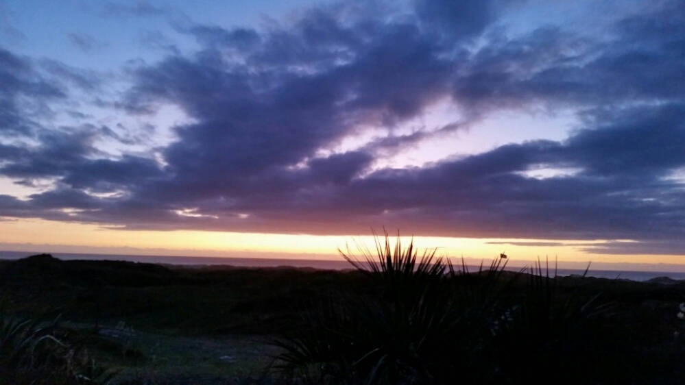 I had to search for the exit off the beach to Hukatere Lodge. I met 2 German women, Eva and Jana, looking for the same place. We finally figured it out. Later we had 7 TA hikers and 2 others around the kitchen table. The Germans outnumbered the Americans 6 to 3 but they are so polite and so bilingual that they all spoke English. Later the owner, Gabrielle, arrived and shared wine, cheese, crackers and tomatoes. This place is great and has a hot shower and cozy kitchen. $15 to camp or $25 for a cabin with a wonderful view and no one else in it. Easy choice. I’m inside. The kitchen even had food so I added onions, asparagus and egg to my dinner.