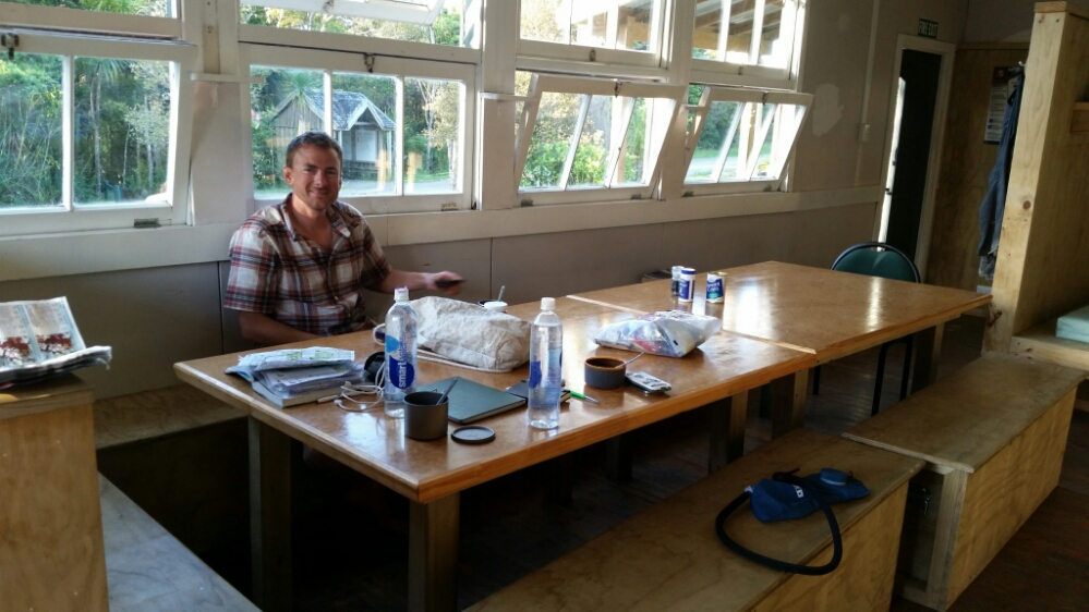 By 3pm Nathan, Brett and I got to the Puketi Hut. It is run by DOC (dept of conservation) but not covered by the hut pass because it’s not a backcountry hut. There are cars here.  It’s still worth the $18 to sleep here. It has a gas stove, refrigerator  (useless to us), toaster, hot water kettle and plugs for recharging. Pretty amazing and perfect place to relax after 3 hard days. It’s part of a campground with a cold shower….. worth every goosebumb. There are a bunch more TA walkers sleeping outside.