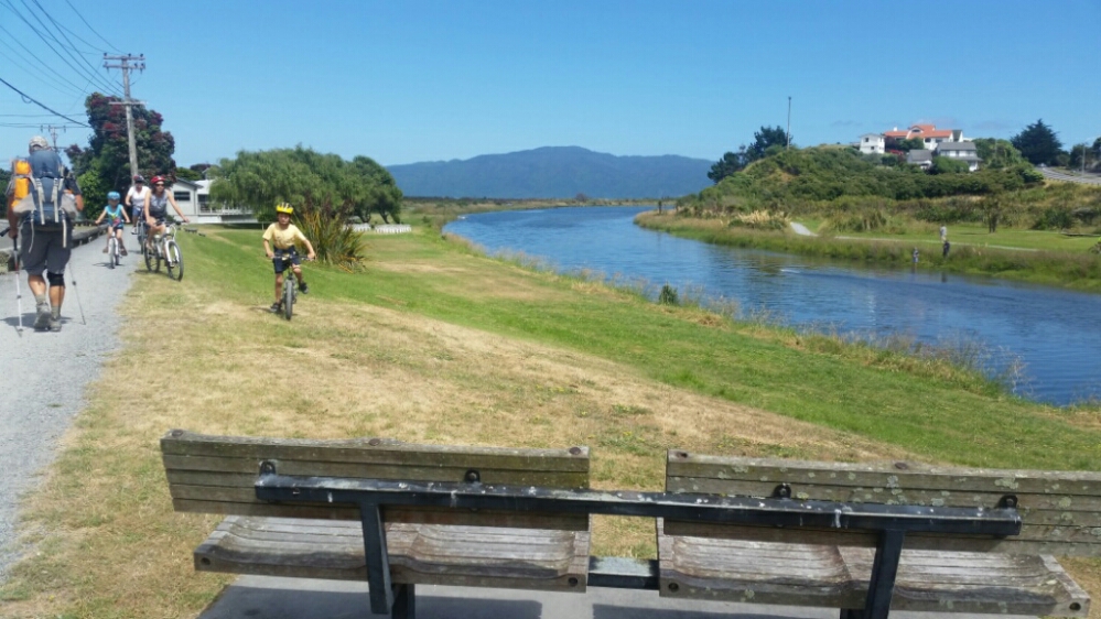 Charlie also stayed at the River Pa and we walked together all day til the end. Right after Waikanae the TA follows a really nice River Trail. That led to a boardwalk and then the beach.