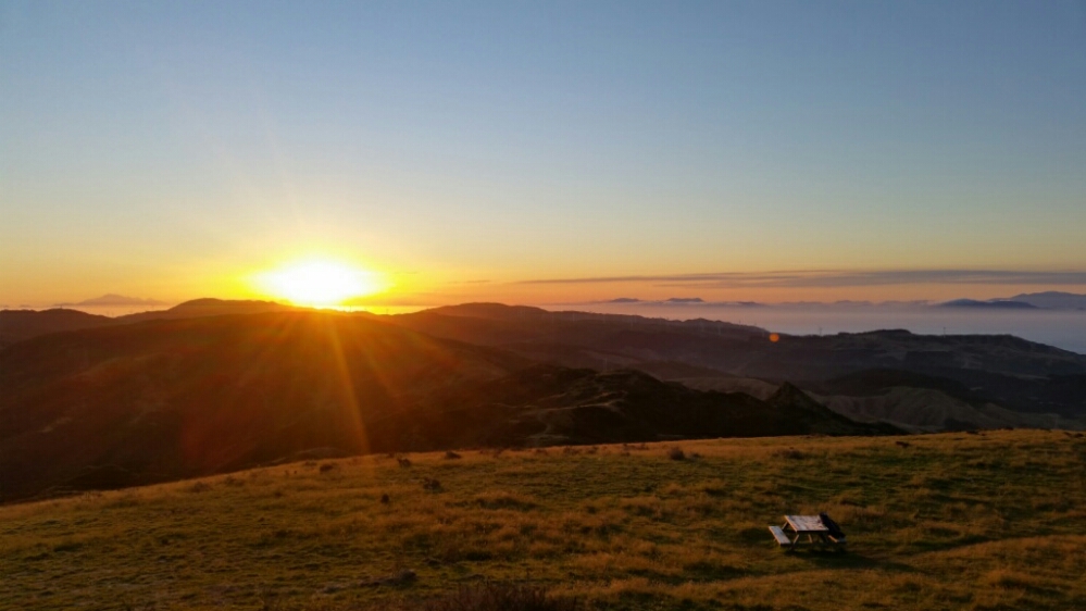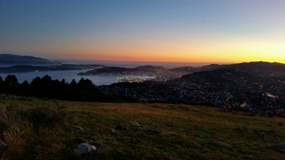 I just couldn’t resist camping on the top of Mt Kau Kau. There is no wind. I can see lots of wind turbines amd they are not moving. I can see the South Island and the lights of Wellington.