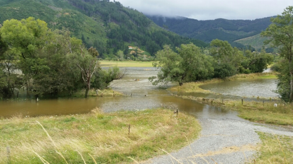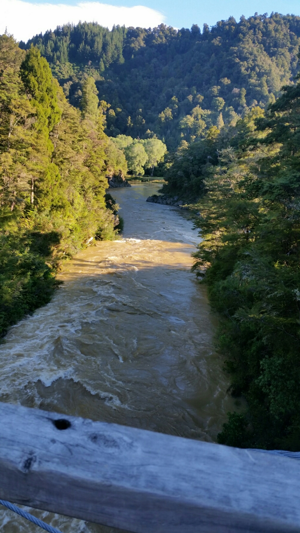 The Pelorus River was brown and overflowing its banks. It must have rained lots in the mountains.