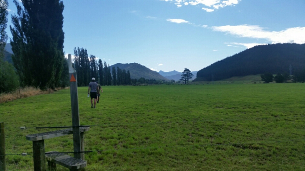 The last section today was Daltons Track. It is a farm track along the river. There are lots of warnings about staying on the track and not walking on the farm road. It turned out to be one of the best farm tracks yet. Flat. Well marked. Straight line across the farm. Stiles in the right places. Of course there were a few connecting sections between paddocks that were thru tall grass and across small streams. We couldn’t go another day without getting our feet wet.