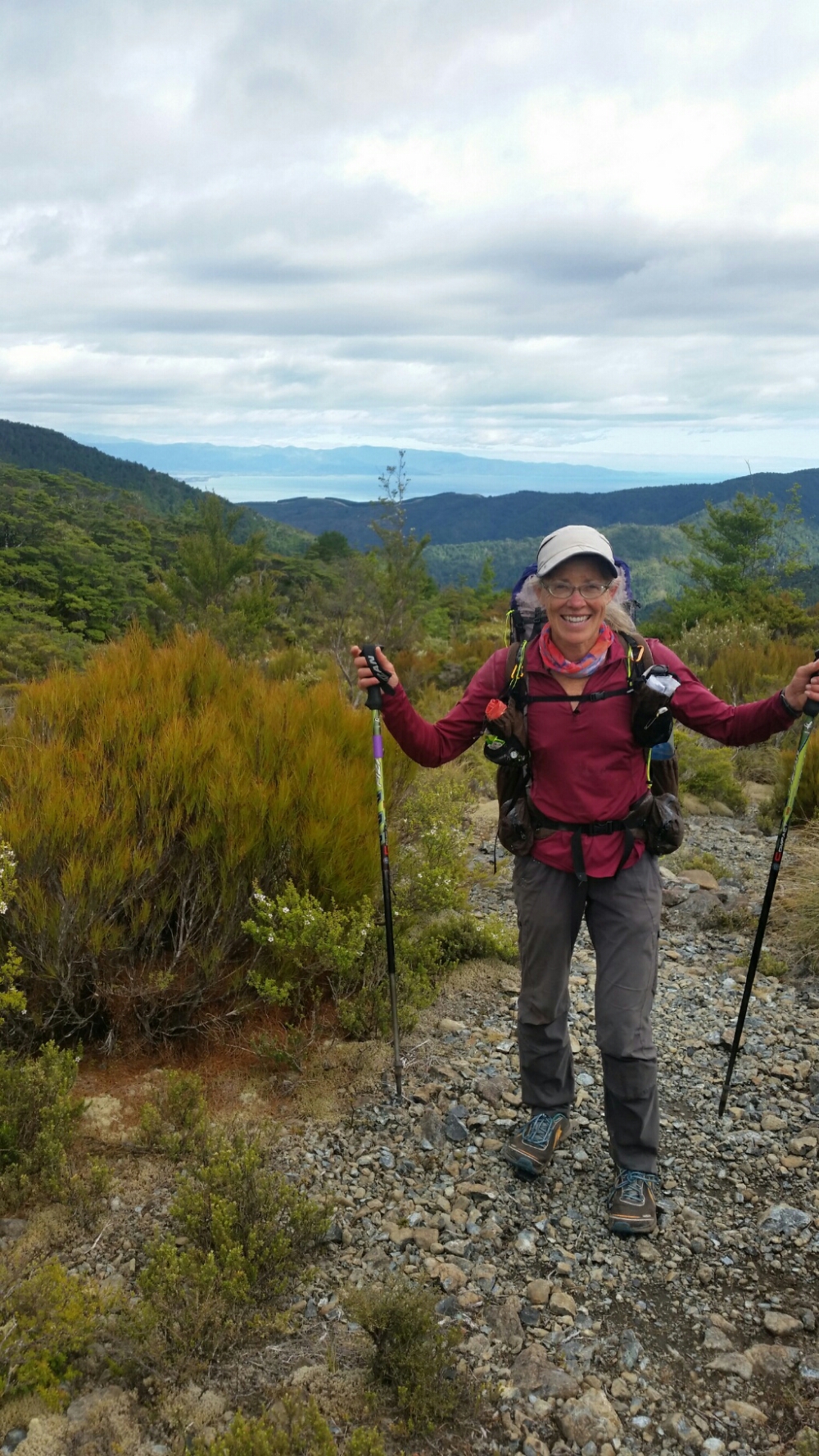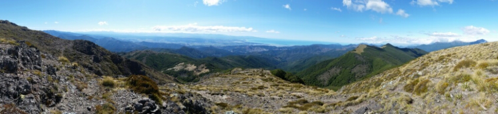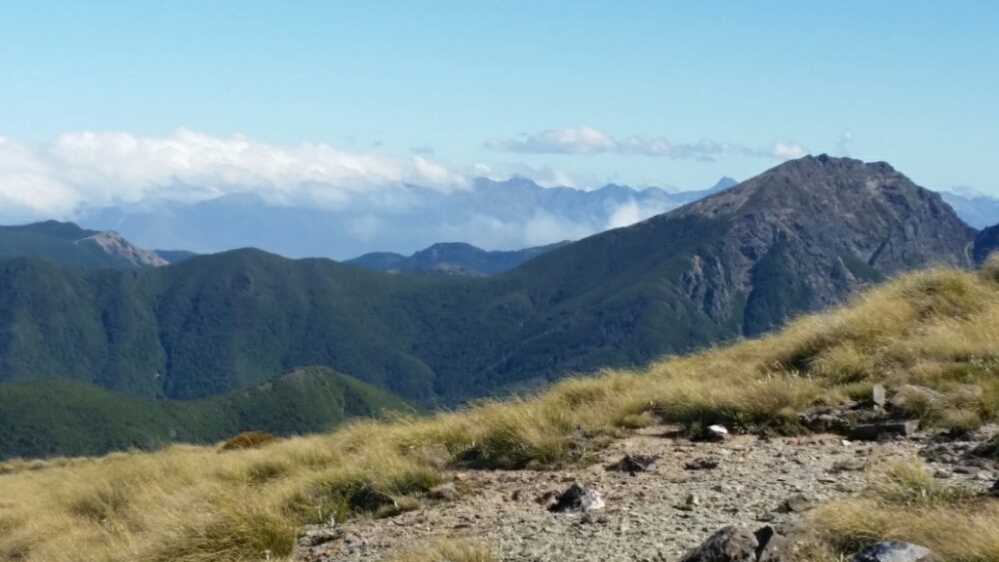 The track was all above tree line between last 2 huts. It was sunny with very light wind…. perfect. I could see Nelson, Marlborough Sounds and layers of mountains.