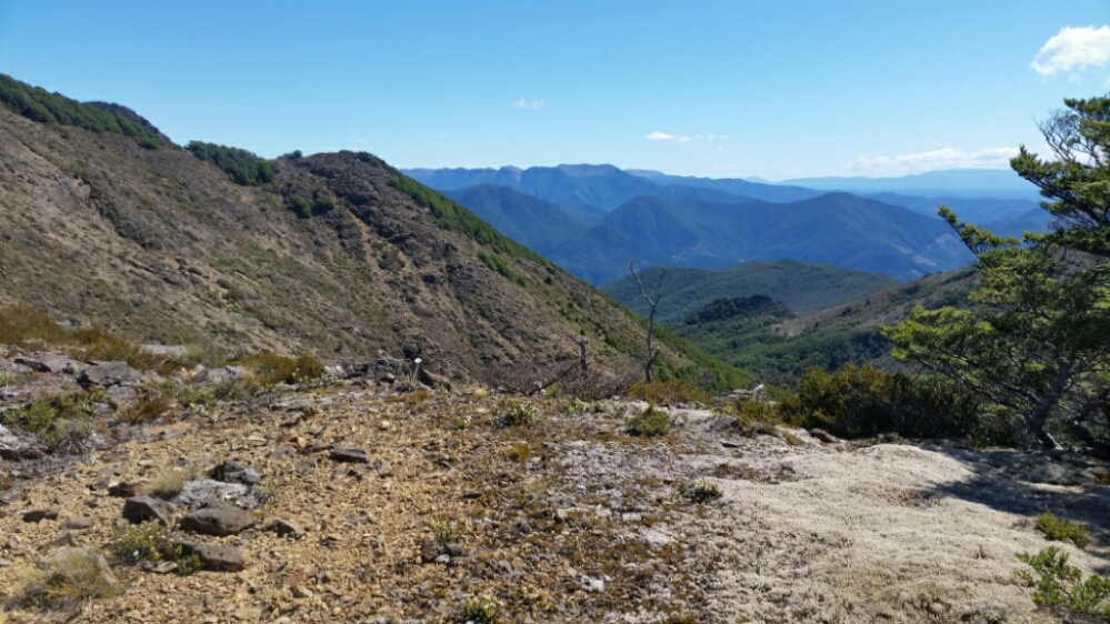 I was the first to leave in the morning. Ridgeline walking gave lots of nice views. On one of the high points Sean and Arno caught up to me.