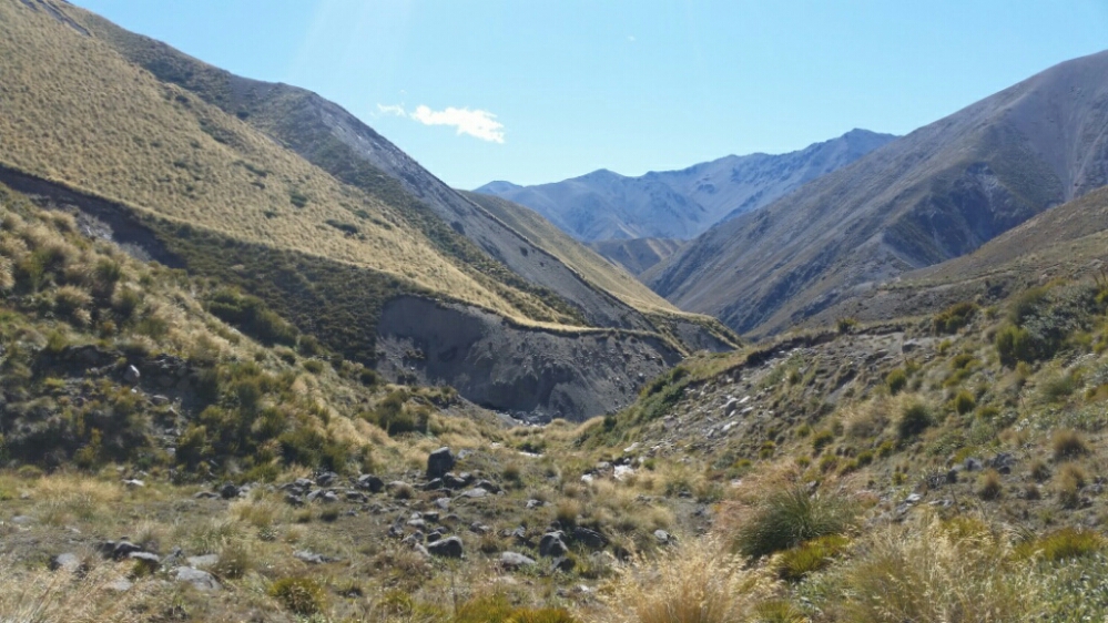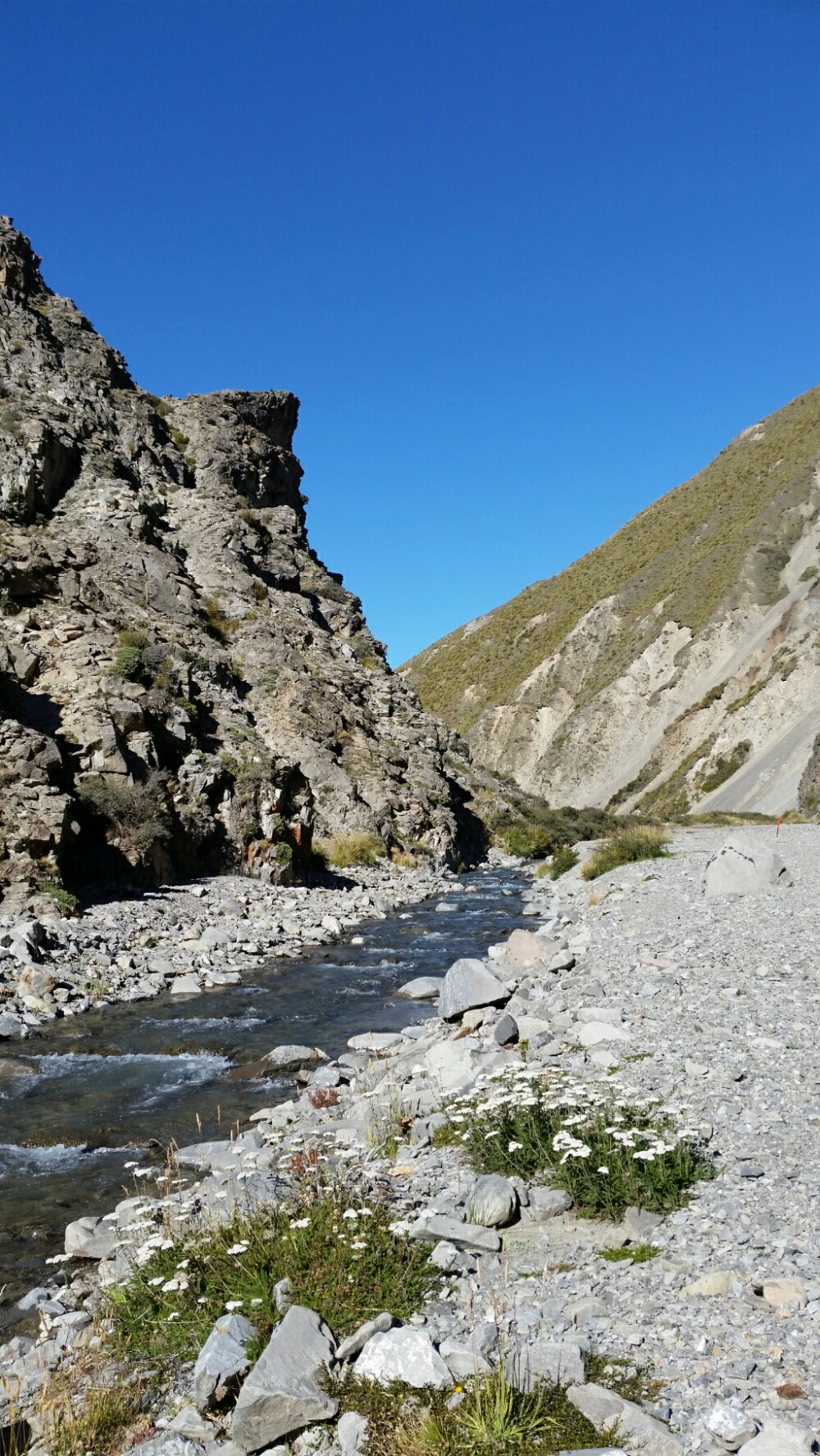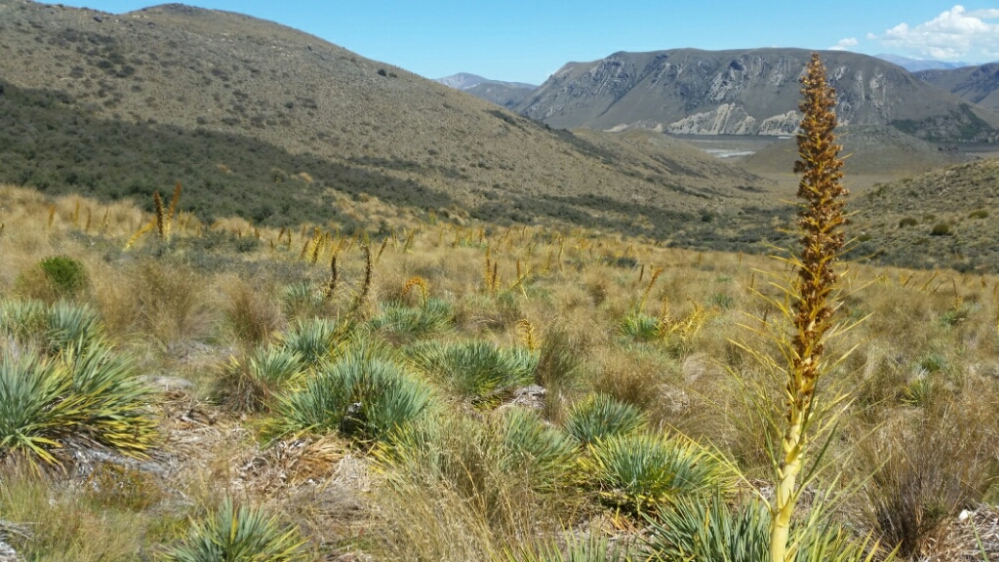 The landscape doesn’t look like the New Zealand I expected. It looks like a desert. But even here there are lots of boggy areas to get my feet wet. There are also sharp plants. At one point I was in the middle of thorn hell. Gorse and spear grass (a yucca like plant with very sharp spikes/spears on the ends of each leaf.) Ouch!