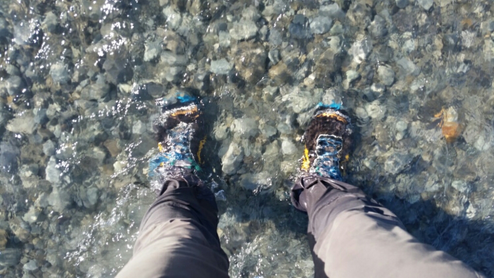 I decided to use Janet’s 500 meter guide.Β It made the crossing way longer because I got higher up than even 500. But it was pretty easy to find places to cross that were below my knees. And then 3 meters from finishing all the crossings I slipped and did a belly flop in 6 inches of water. I guess I let my guard down a bit too early. I just had to laugh.
