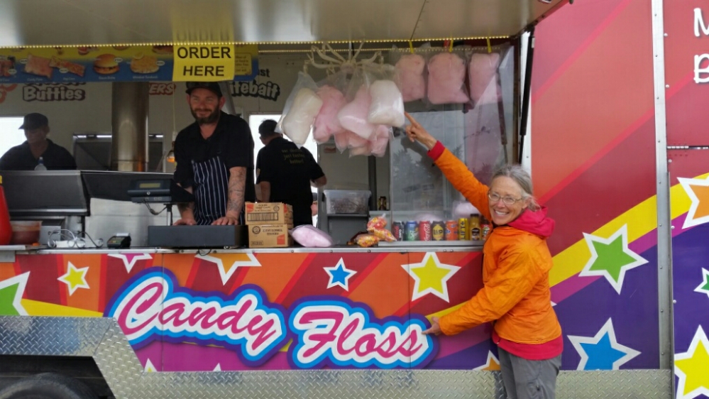 From Mt Cook I hitched to Fairlie where I stayed with E and Andy again. I just love hanging out in their home. We went to the local A & P Show (Agricultural and Pastoral). It was like an American county fair. We watched a sheep shearing contest and some wood chopping contests. As a retired dentist I was especially interested in the candy floss which we Americans call cotton candy.