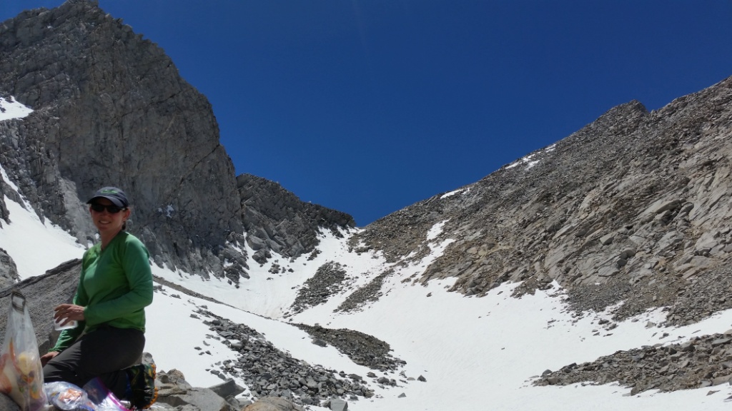 On the way down from the pass we met 2 hikers coming toward us. They had just climbed Middle Palisade Peak and were headed to Split Mountain. Then they are going to Mt Shasta. That will complete their ascent of all 14 California peaks over 14,000 ft. In one week! That’s insane.