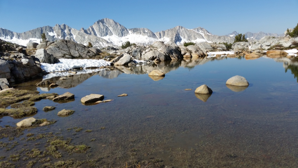 There were lots of hikers coming up from the Bishop side. Amazingly we ran into Nancy Pallister. She wrote THE hiking guideΒ for the Wind River Range.Β  She lives 4 miles from me and has helped us immensely in planning our upcoming Wind River hike. It was really exciting for Rockin and Wired to meet her.