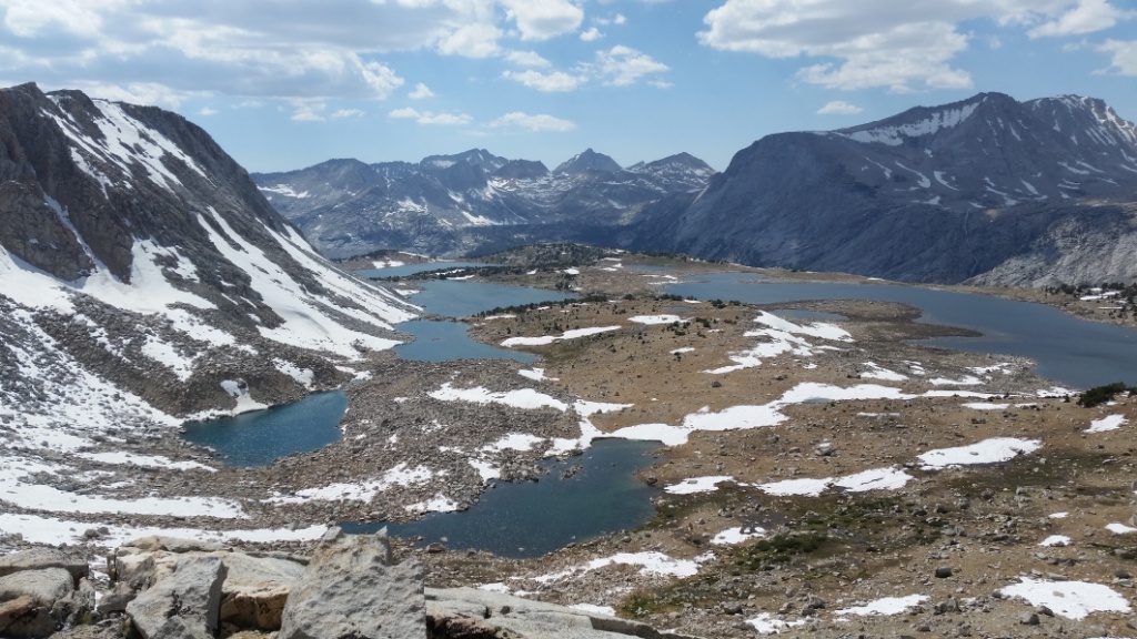 We passed many lakes and had a good mix of easy walking, big boulder field crossings and snow which was too soft by the end of the day.