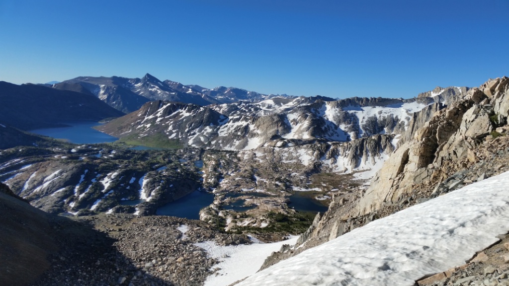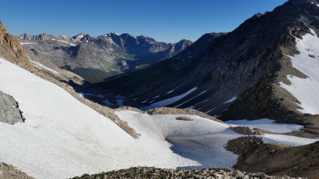 Stanton Pass was next. The way down has class 2 and 3 sections. Rockin did a superb job of choosing a path up and down that felt safe and very doable. She instructed us on hand holds, foot placement and body position. Many of the boulders on the way down were loose and that was a bit unnerving but we got thru it.