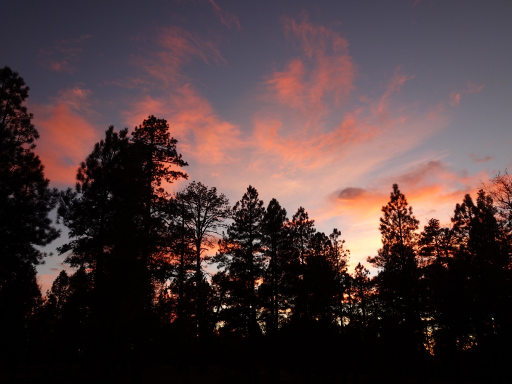 I stopped early (4:30) because I’m 2 miles from the highway and the trail merges with a dirt road just ahead. I can’t tell how far past the hwy trail starts again. I don’t like to camp next to any road if I can help it. And I can see the sunset from here…. thru the trees.