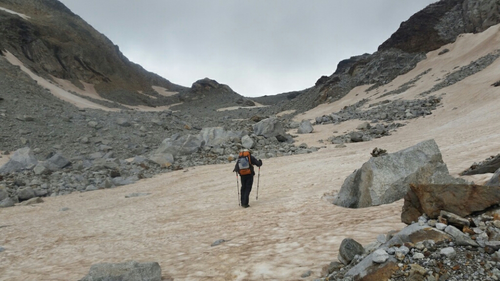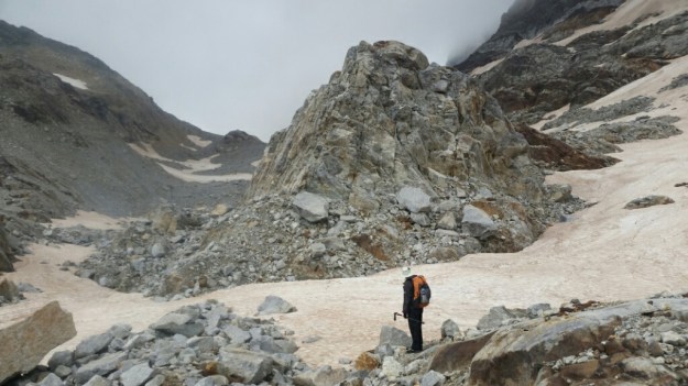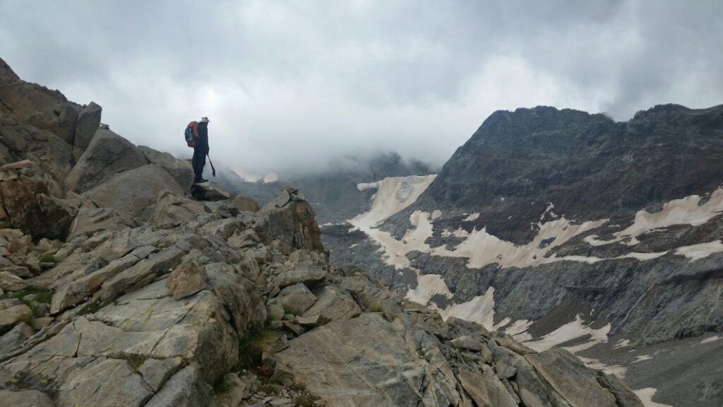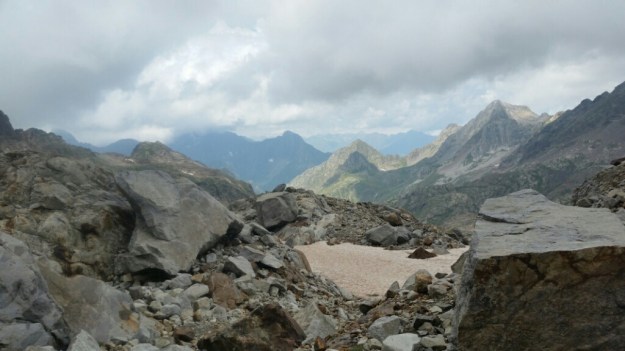 Then we had to walk down a boulder field and back up to the Col du Pluviometre (which means rain gauge) which is above the col.