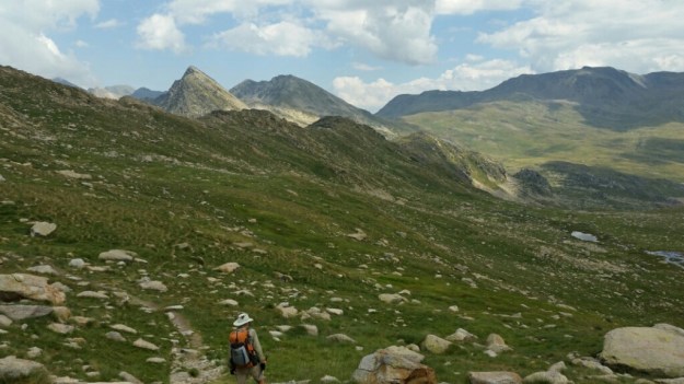 Tomorrow we hike up Pic Carlin 2921 m. We positioned ourselves perfectly for a morning summit. We quit walking before 6 and set up our tents near a stream, sheltered from the light wind and with a view of the mountain. We watched the sun and clouds change the look of the peak while we ate dinner. This is our best campsite yet.