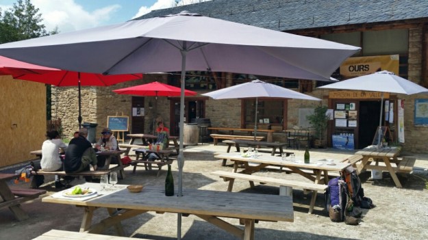 We walked in sun and clouds to Eyne and stopped at the gite. It was closed for a family wedding. Bummer. The owner said she knew of someplace in the village who rents out beds. So we are there and it’s perfect. The book also says no services in the village. But there is a great bar/restaurant that served us lunch after 2pm! It was great.