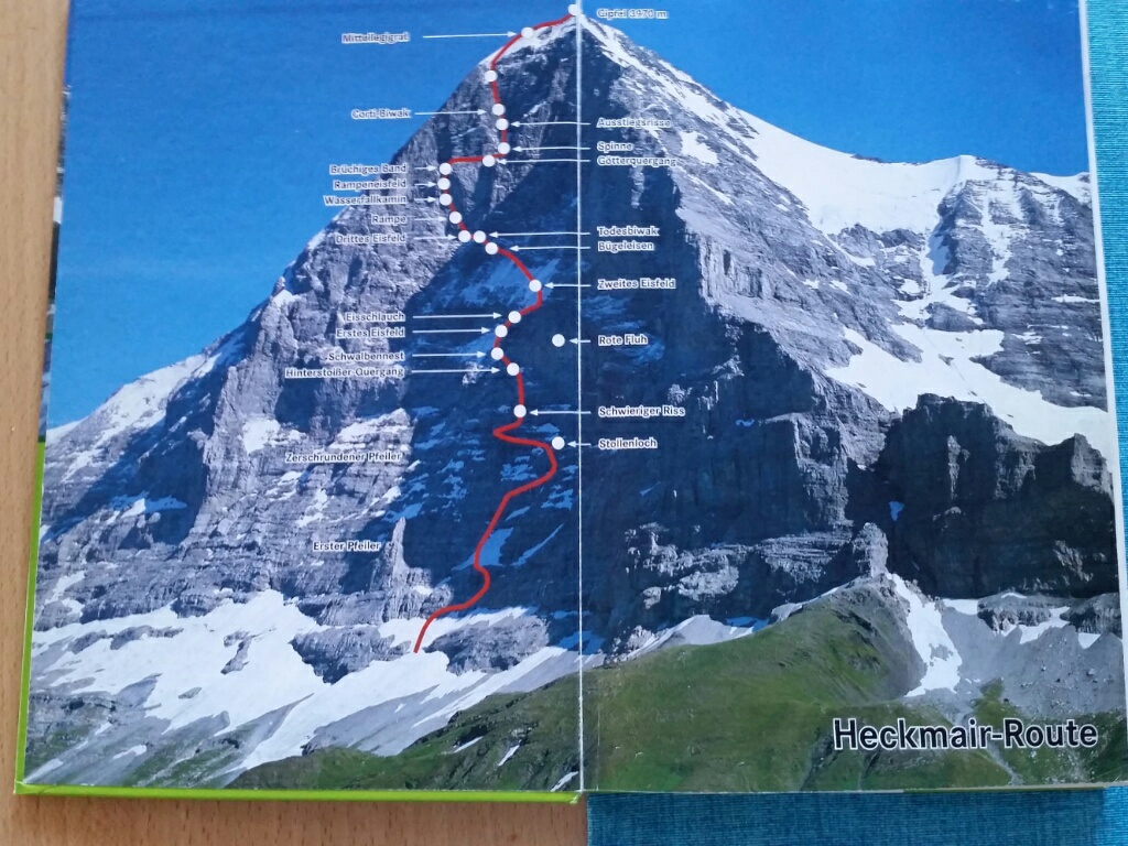 From Lauterbrunnen it was a steep up to Alpiglen, 1616m, launching place for climbers of the north face of the Eiger. A book had a photo of the first route up.