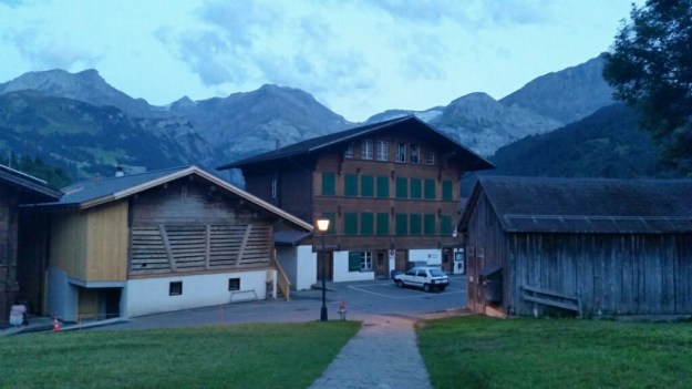 We walked down to Lauenen, 1241 meters. We got there at 4 on Sunday. The store was only open til 5 so we had to quickly decide if we were staying or moving on and how much food we should buy. Jim asked the grocery store owner about where to stay. He told us to go over to the old school house which has dormitory accommodations. There is a phone number listed at the door which you need to call. When we got there 3 hikers had already phoned and said the lady would be there at 6. So we waited. The 3 hikers are from Korea (2 men aged 66 and 67 and a woman age 56) and have hiked all over the place including the JMT and Mt Rainier 3 times.