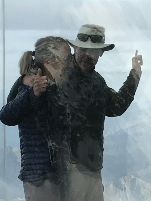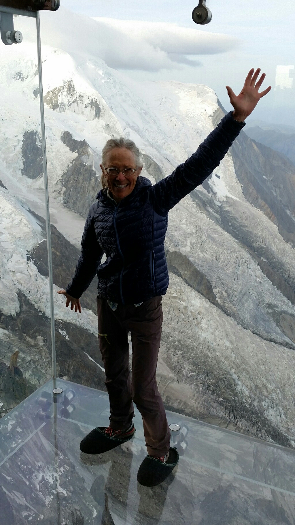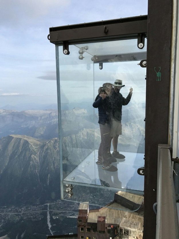 Once out of the cable car there are several attractions….. viewing decks, “Step into the Void” plexiglass overhang, climbers’ museum….. all included in the €60 price of the ride up. Plus there is a gift shop, cafeteria and restaurant.