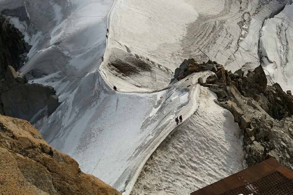 Since we were in the first car there was no one already up there except employees. There were many who were just starting their climb up Mont Blanc. It seems kind of weird to jump start a climb with a cable car ride but the next 1000 meters are plenty hard.
