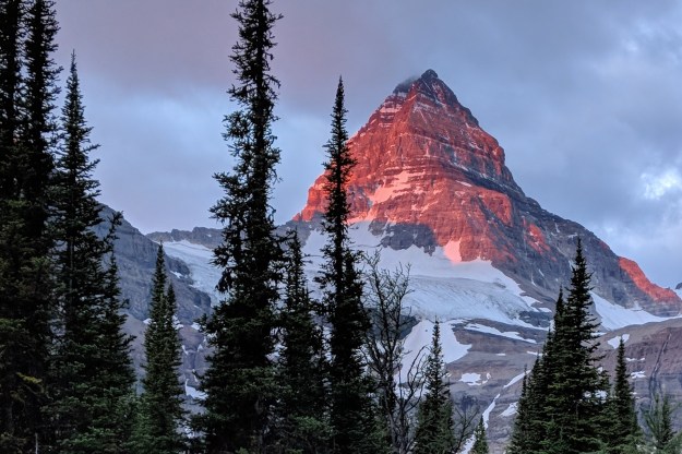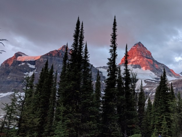 We saw 2 people up to this point but hundreds after. Sunshine Village Ski Resort’s gondola allows access for many people. A hike from the top of the gondola to the pass is a popular 18 km hike. It was windy and icy cold up there.