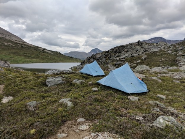 It wasn’t raining this morning but we put on our rain clothes because we knew we would be walking thru wet brush. It started raining just as we got to the lake. This is just past the point that the 6 passes alternate starts. We want to do this to avoid walking on the unmaintained trail on the main route. Most importantly, it is supposed to be spectacular but hiking up to 8500 ft with threatening weather didn’t seem like a good idea. We want to see. So we made camp early. And if course it hasn’t rained since. But I am tired and a short day seems like the right thing to do. Plus the inReach weather forecast says it might rain at 6 but be much better weather tomorrow.