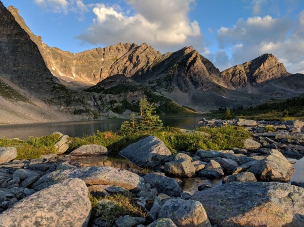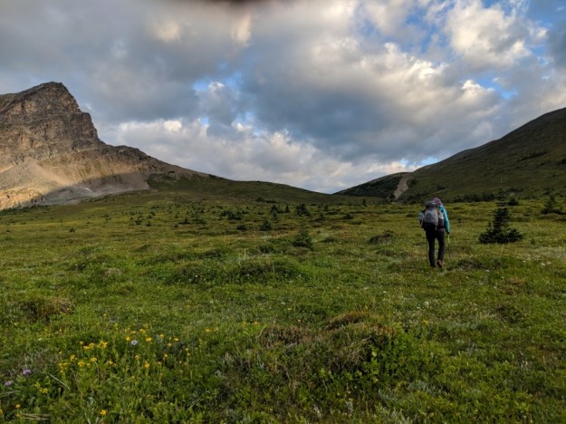 Once we got to Maligne Lake we started up the 44 km Skyline Trail. It’s known for it’s long stretches of alpine, stunning views, challenging climbs, well built and maintained trail, fully booked campsites and lots of people. But we saw almost no one. Just a couple of day hikers at the beginning. Probable because we started the Skyline Trail at 4pm.