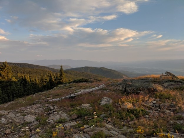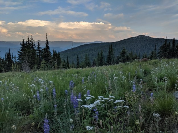 Later Alice who works here did my laundry. I packed up all my food. I planned on a later start time after yesterday’s effort. But it’s really HOT and the first 5 miles climb 3100 ft. There’s no water for 10 miles. Finally I left at 5pm and climbed to the top of Bussard Mtn 5900 ft. It was shaded and had lots of switchbacks. Plus there were ripe huckleberries.
