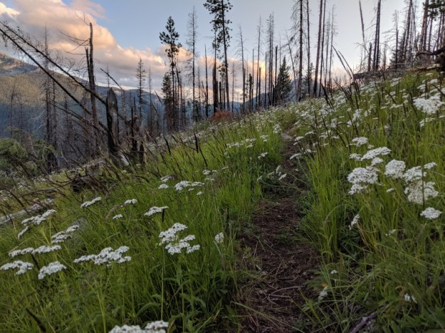 I finally got to the bottom of Parker Ridge. The guidebook calls this one of the PNT’s epic climbs. 5100 ft in 10 miles. It was 2pm when I got to the bottom and there was supposed to be some camping about 7 miles up.
