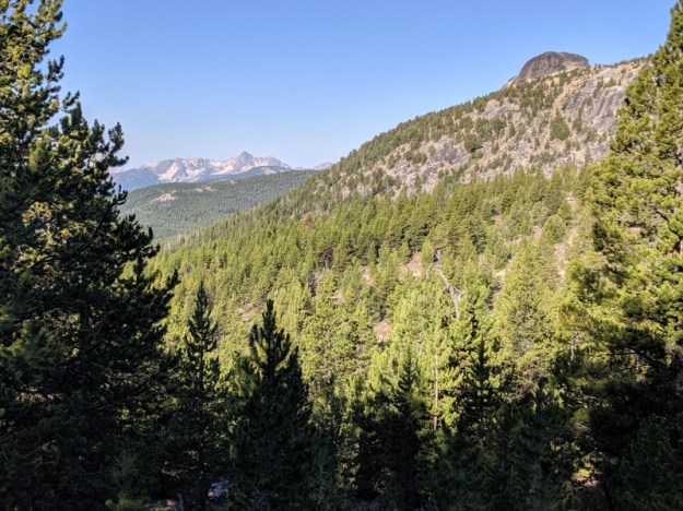 I’m camped at Spanish Camp. It’s a forest service patrol camp. And it’s even occupied by several rangers. Their horses and mules are around the cabin. They let me look inside. It’s a really cool old log cabin and of course I forgot to take a photo. They were able to give us updates on trail conditions. Lots of work has been done this summer to repair and clear trail damaged by fires in 2015 and 2017. They told me where to expect bad spots. They said the trail is clearer and better than it has been in years. Lucky us.