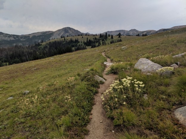 I felt great today. I also felt really lucky. Trail crews have been clearing the trail of downed trees all summer. Today was mostly clear trail. Cairns marked the obscure portions. I walked across miles and miles of open meadows with expansive views.