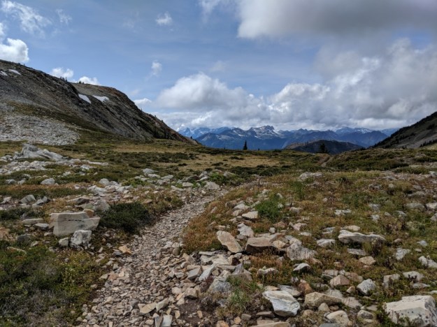It was cloudy again this morning and then cleared in time to see expansive views after Sky Pilot Pass.