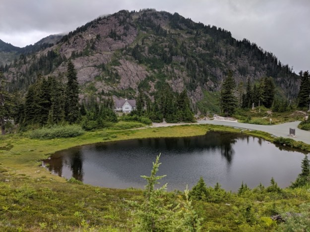 Picture Lake. Mt Shuksan is visible here on a clear day. Not today. I need to come back.