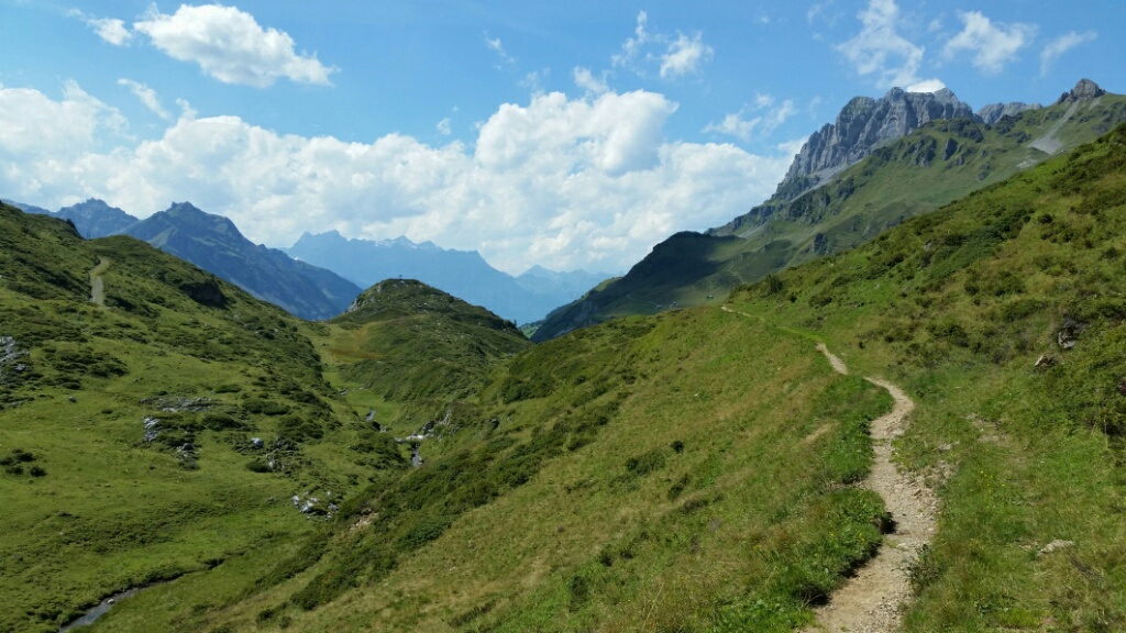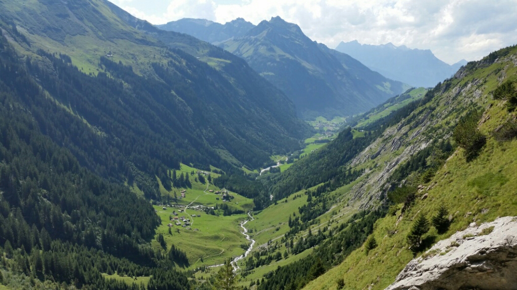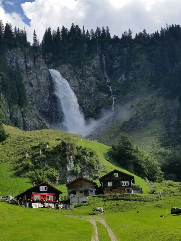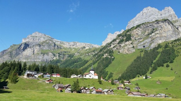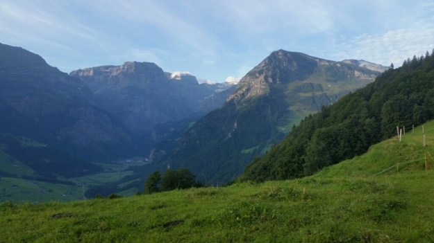 We walked further down valley to the village of Unterschächen where we checked into the Hotel Alpina.We are staying in a dorm room on the top floor. There are 4 rooms with 7 or 8 beds in each. We have it all to ourselves. CHF 40 for bed and breakfast. We took our first shower of the hike. It’s been really humid and it was wonderful to wash all the sweat off. We ate in the restaurant and I had rösti with ham, onions and cheese. Yum! I can’t believe how much cheese I have eaten since I got to Europe.