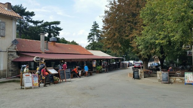 It was a long, long way down and we finally got to the little town of Vizzavone. There is a train station, a couple restaurants, refuge, hotel and camping. A one hour train ride goes to “the mountain citadel town of Corte was once the capital of Corsica, and it remains a place of Corsican culture.” There are lots of hotels there and it sounded like a perfect place for a zero.